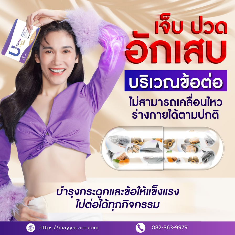 - U-Profex ผลิตภัณฑ์เสริมอาหาร บำรุงกระดูก ป้องกันและบรรเทาอาการปวดตามข้อ กระตุ้นการสร้างน้ำไขข้อ เร่งการซ่อมแซมเส้นเอ็น ทำให้การเคลื่อนไหวของกระดูกและข้อดีขึ้น